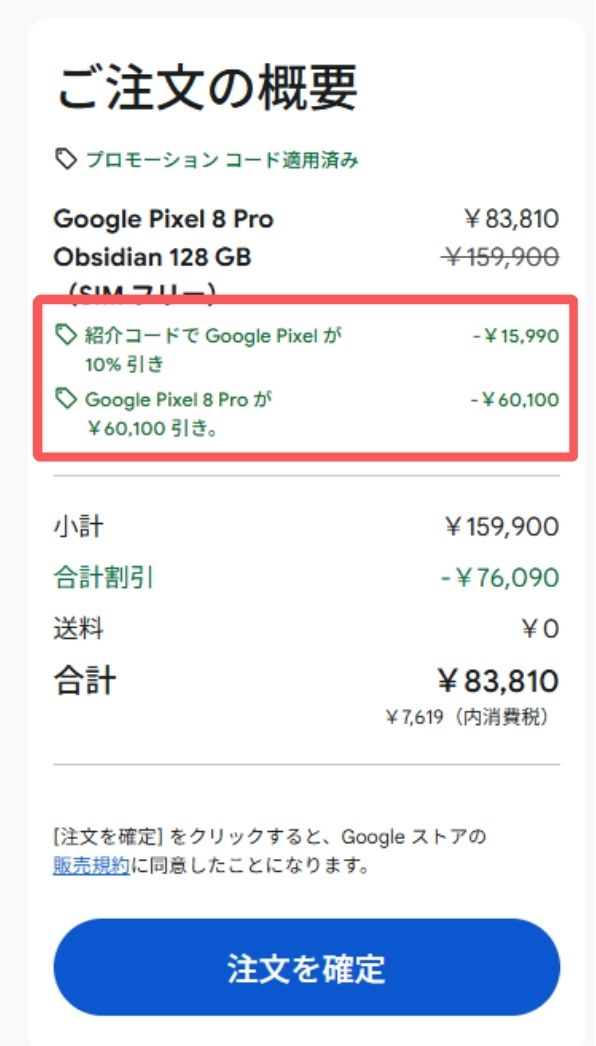 さらに、Pixelスマホが10%オフになる「紹介コード」が併用できます。