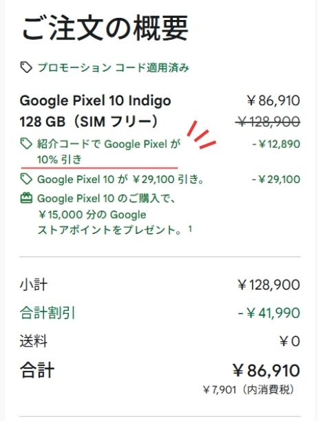 GoogleストアでPixelスマホを買う場合、各種プロモーションコードが使えるかで、最終の値段が大きく変わります。