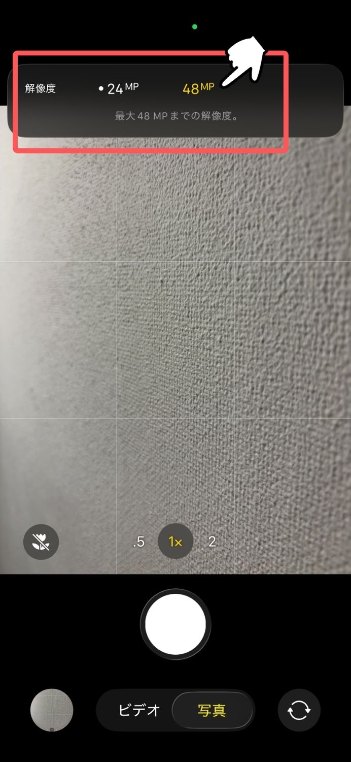 これで、次にカメラを開いたとき、最後に選んだ解像度(24MP or 48MP)のまま起動します。