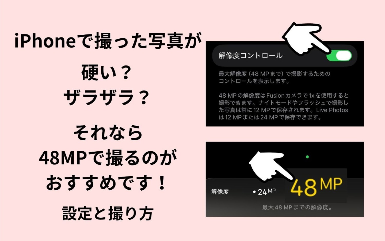 iPhoneで撮った写真がこのように感じる方は、もしかしたら48MP設定にして撮った方が良いかもしれません。